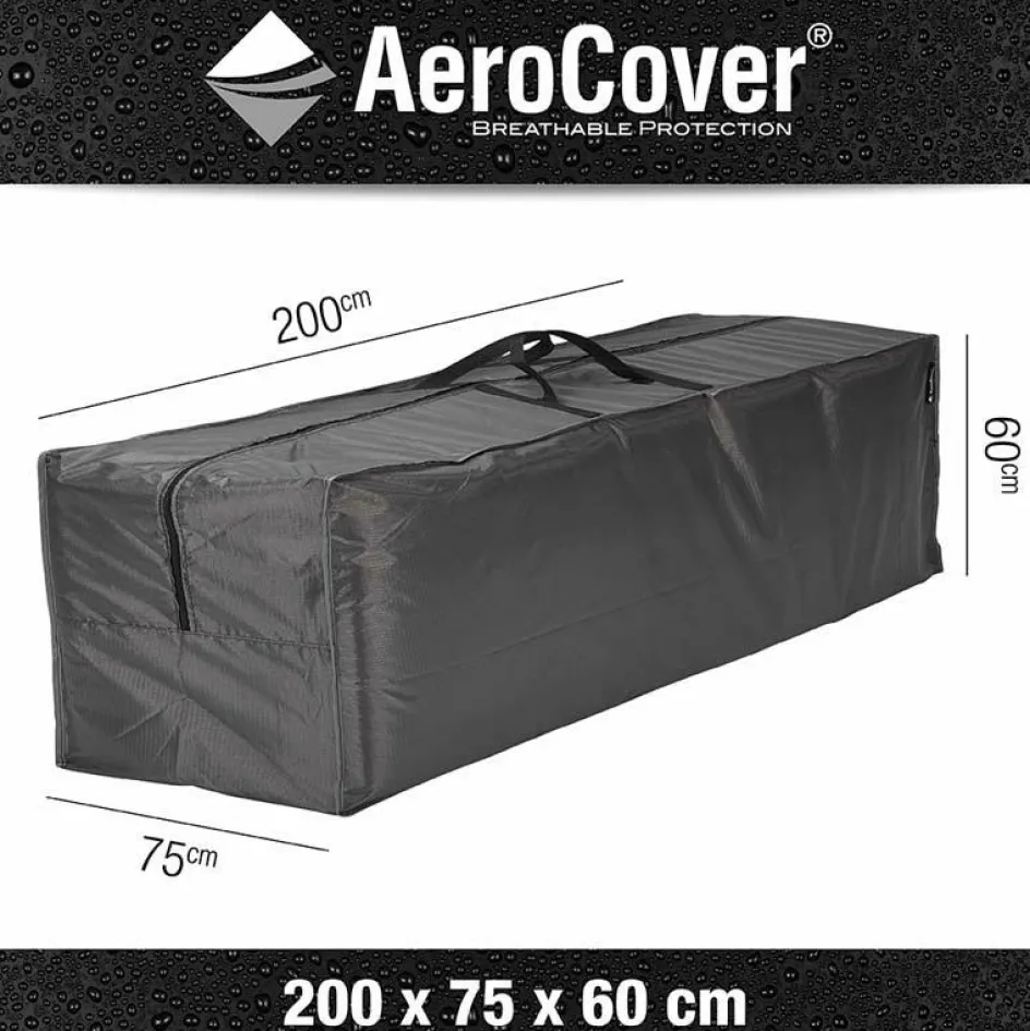 Deze AeroCover ademende kussentas is ideaal voor het opbergen van loungesetkussens. Deze kussentas is 200 centimeter lang, 75 centimeter breed en 60 centimeter hoog. De kussentas heeft versterkte handvaten en een dubbele rits zodat u makkelijk bij de kussens kunt. De kussentas is geschikt voor binnengebruik.