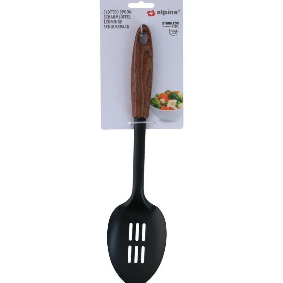 De Alpina schuimspaan is ideaal voor het afgieten en opscheppen van voedsel. Vervaardigd uit stevig en hittebestendig materiaal, perfect voor dagelijks gebruik in de keuken.