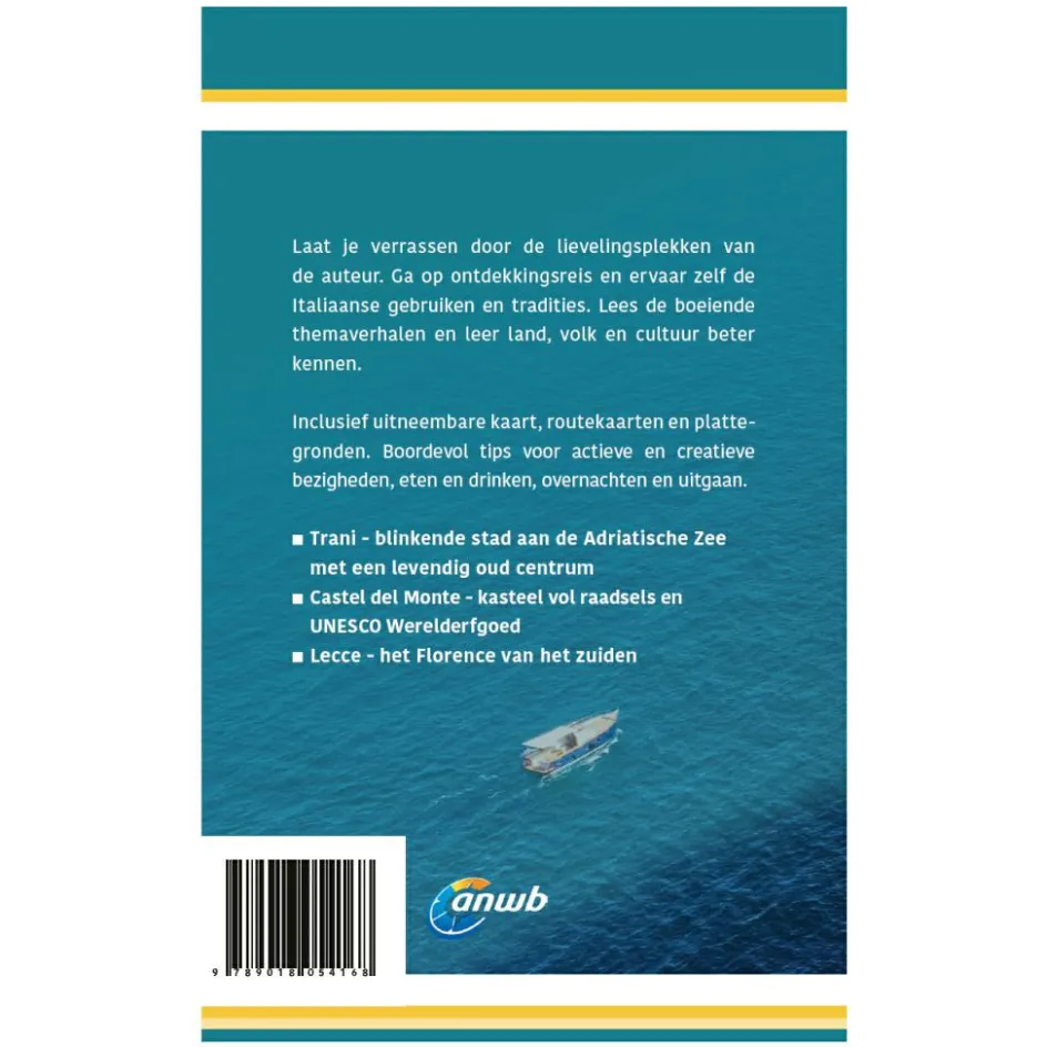 Zorg dat u optimaal op de hoogte bent als u op vakantie gaat naar Italië met deze ANWB Ontdek Puglia reisgids. De reisgids bevat uitgebreide informatie over vervoer, slaapplaatsen en wat er allemaal te beleven is in Puglia. Zo mag u de kathedraal van Trani of de steile kliffen van Polignano a Mare niet missen! Bent u toch meer van de historie, dan heeft deze Puglia reisgids daar ook ideale belevenissen voor in de route staan. De compacte reisgids is voorzien van een uitneembare kaart.