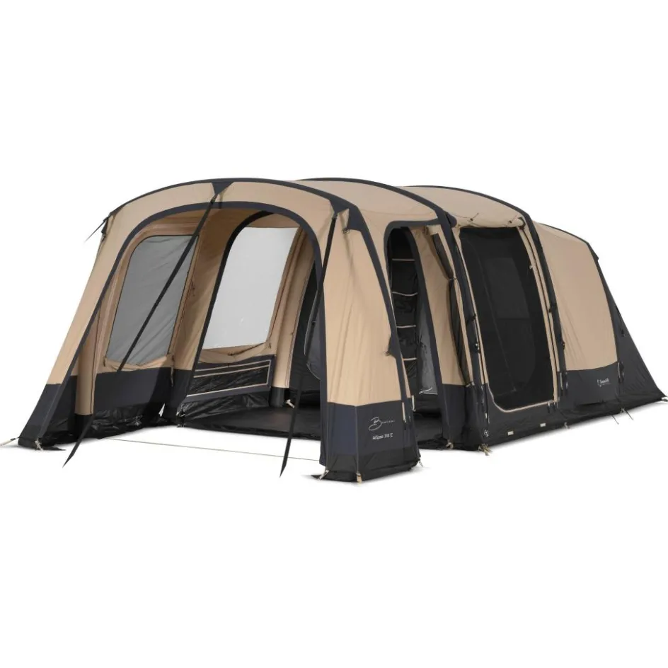 De Bardani AirSpace 310 TC opblaasbare tent is een rechtwandige 4-persoonstent met een afsluitbare, diepe luifel. Dankzij het luchtslangenframe met 12 cm brede TPU-tubes staat de tent snel en bijzonder stabiel. Zoekt u een tent met het ademende comfort van technisch katoen? Dan biedt de AirSpace 310 TC veel leefruimte, stahoogte en een prettig binnenklimaat voor comfortabele gezinsvakanties.