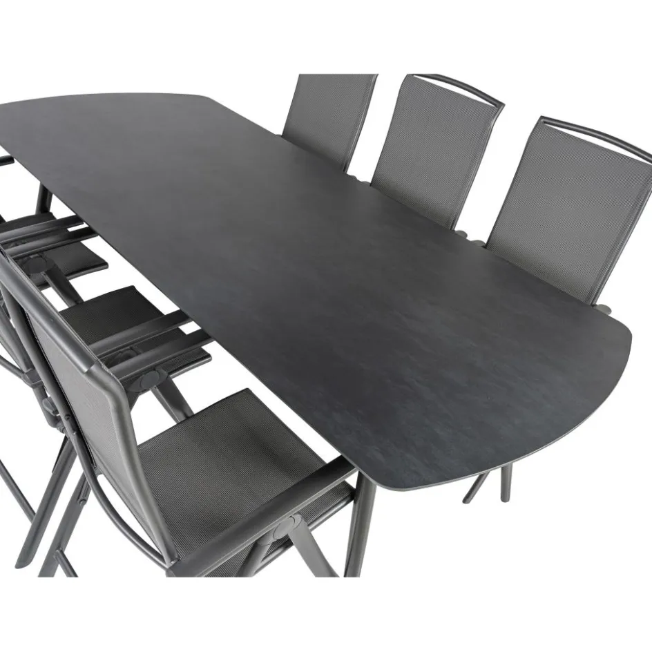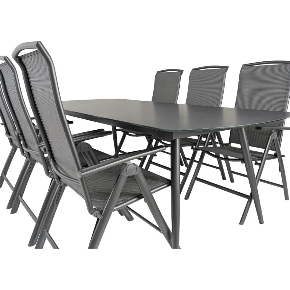 Deze Bardani Olivia 240 x 100 cm Capri 6 tuinset is een onderhoudsvriendelijke set gemaakt van kwalitatief sterke materialen. Deze set bestaat uit een ruime dining tafel en 6 verstelbare tuinstoelen. Beiden hebben een lichtgewicht frame van aluminium, waardoor ze makkelijk te verplaatsen zijn.