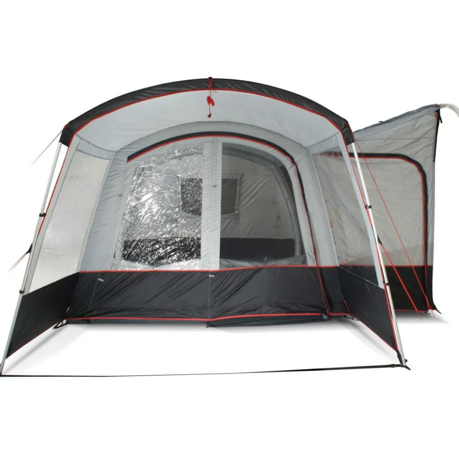 Zoekt u een bustent die snel staat en direct extra leefruimte naast uw buscamper creëert? De Bardani Silverstone Air bustent combineert een opblaasbaar frame met veel licht en beschutting. U zet de tent eenvoudig aan de zijkant van uw bus, waardoor u een tochtvrije, droge leefplek krijgt met voldoende ruimte voor tafel en stoelen of een optionele slaapcabine. Voor iedereen die gemak, comfort en degelijk materiaal belangrijk vindt, is de Bardani Silverstone Air bustent een betrouwbare keuze.