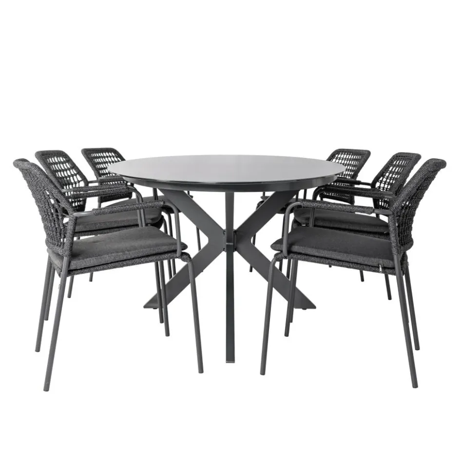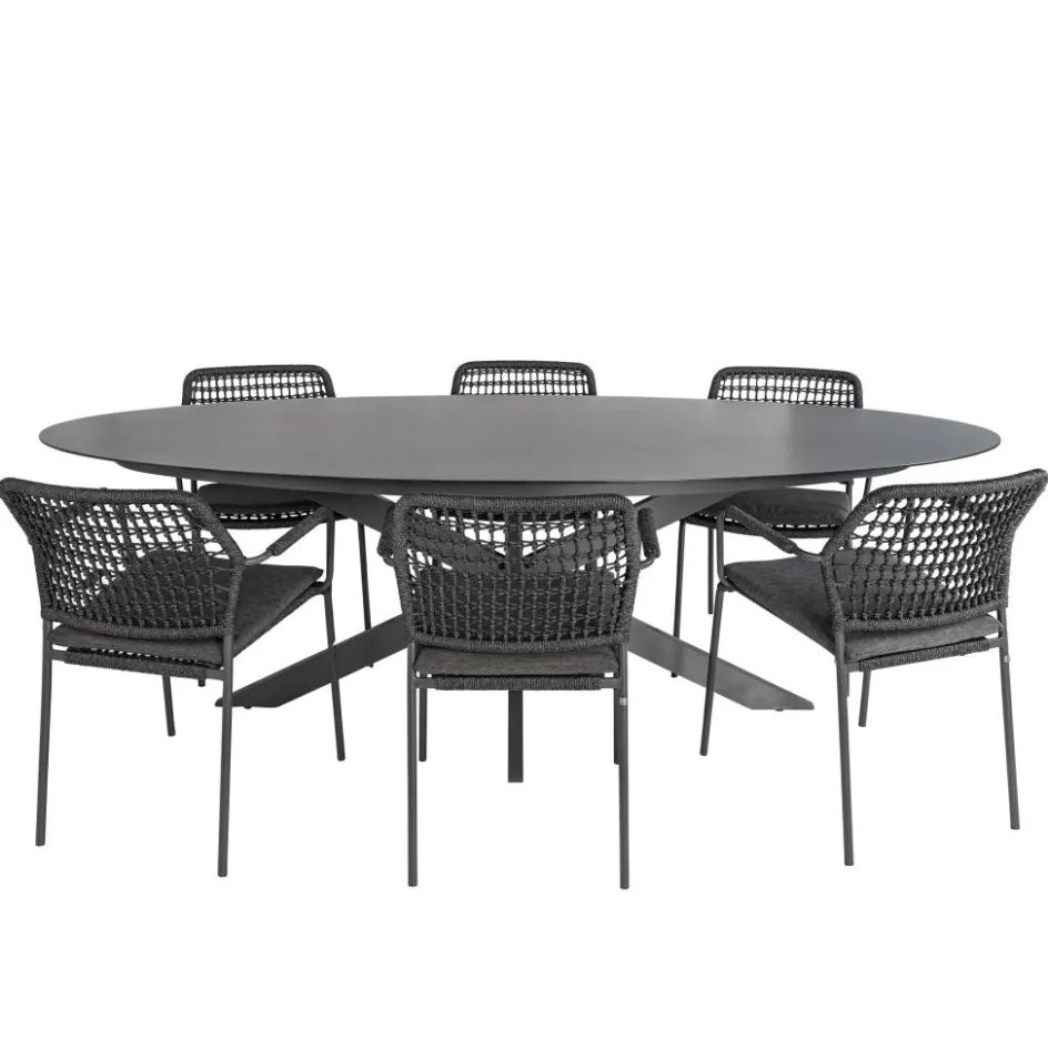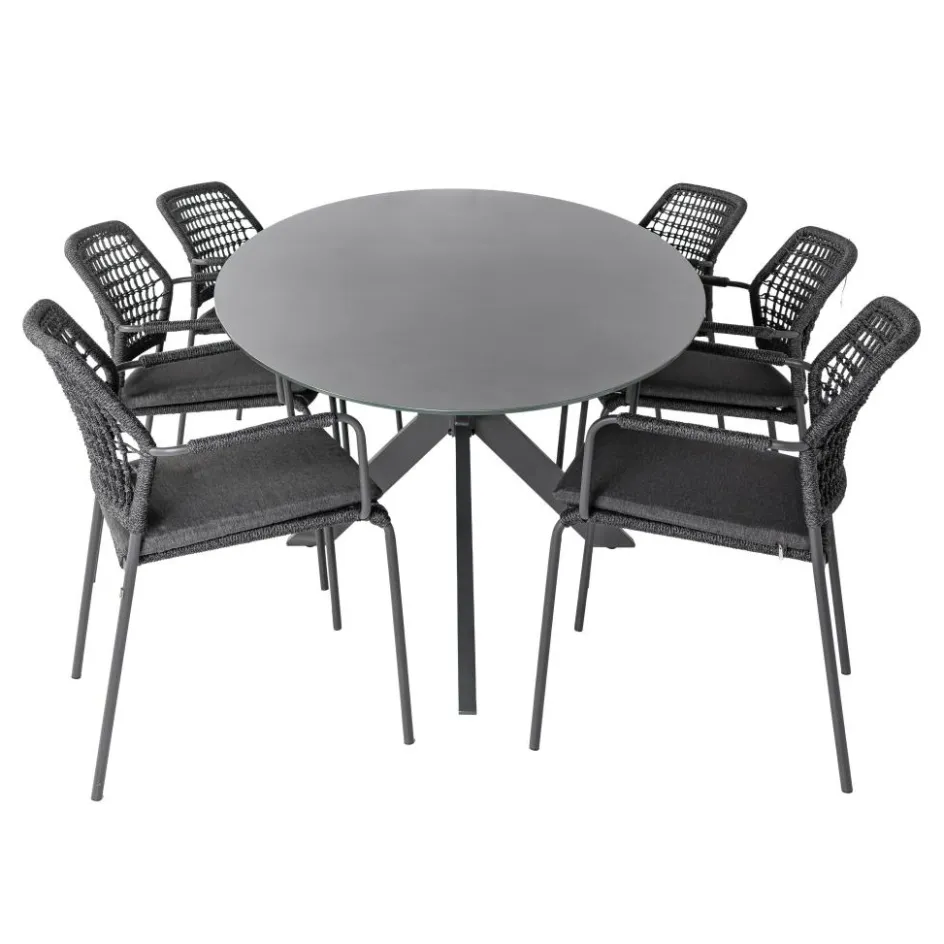 Met de Bardani Varesse 240 x 108 cm Barista 6 tuinset geniet u van stijlvol comfort in de buitenlucht. De ruime tafel en zes stoelen in modern antraciet maken elk koffiemoment of diner extra gezellig. Perfect voor ontspannen genieten in uw tuin of op terras!