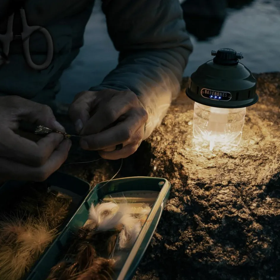 De inspiratie voor het design van de Barebones Beacon Lamp lantaarn is gehaald uit de combinatie van de traditionele visserslantaarn en een mijnwerkerslamp. Door middel van de karabijnhaak is deze oplaadbare lamp gemakkelijk op te hangen. Door de stevige basis is de lamp ook handig neer te zetten. Bij de lamp zit een oplaadsnoer voor de oplaadbare batterij. De Beacon lamp is dimbaar in 3 standen. De batterij gaat ruim 200 uur mee op de laagste stand en 3 uur op de hoge stand.