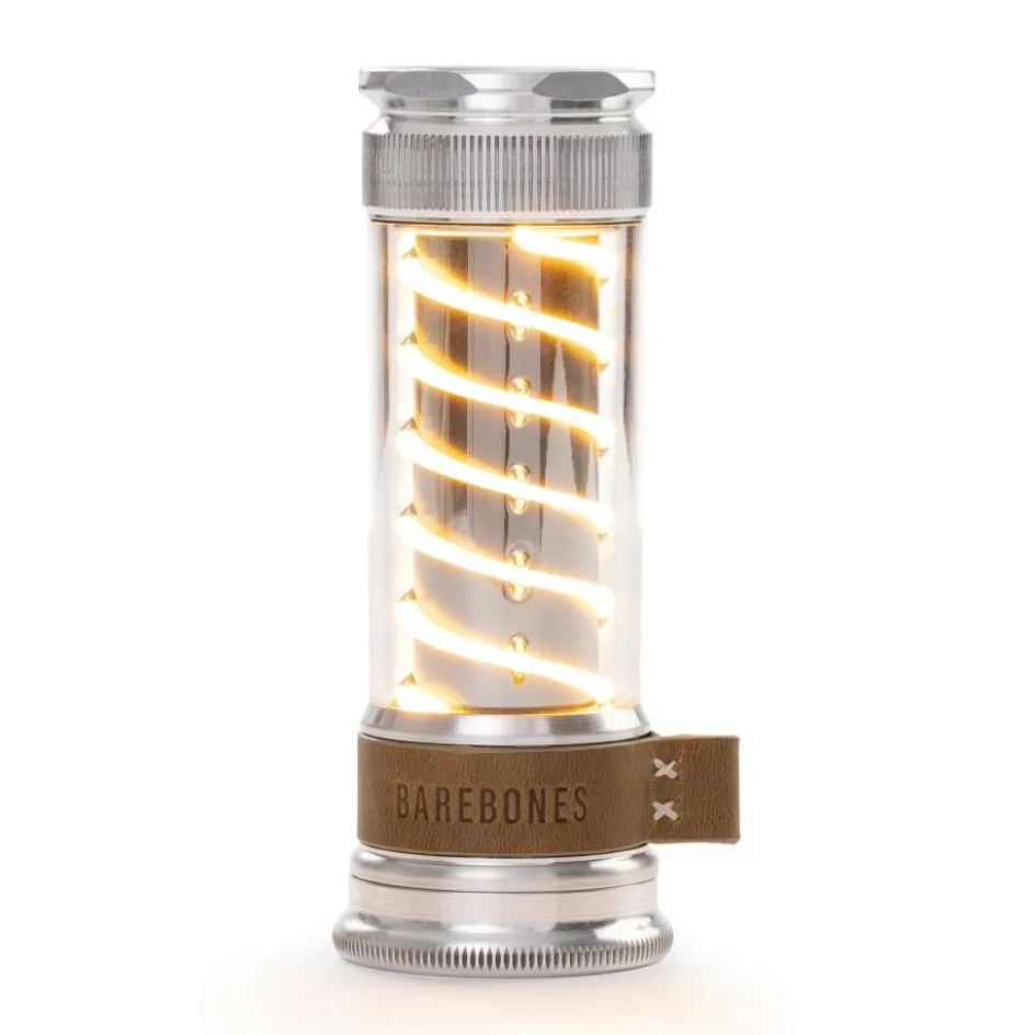 De Barebones Edison Light Stick lantaarn zorgt voor een knusse sfeer met zijn LED-draad die elegant rond de binnenste behuizing is gedrapeerd. De LED-draad heeft vier instellingen, waaronder een flakkerende kaarsmodus voor extra gezelligheid. Aan de onderkant van de Light Stick bevindt zich een handige zaklamp met twee helderheidsniveaus. Je kunt de Light Stick opladen via een USB-ingang of gebruiken met de Barebones Battery Beacon & Vintage. Met het bijgeleverde leren riempje kun je de Light Stick moeiteloos aan een sleutelring bevestigen. Deze veelzijdige lichtstaaf heeft een handig formaat van 4 x 4 x 11 cm.