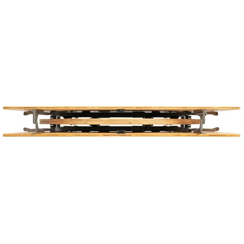 Deze Bardani Bambusa campingtafel heeft een bamboe tafelblad die tot 30 kg gewicht aankan. De vier poten zijn allemaal in lengte te verstellen, zodat deze stevig kan staan op oneven ondergronden. Verder is de tafel inklapbaar, waardoor deze eenvoudig meegenomen kan worden op vakantie. Het stevige frame en tafelblad zijn waterbestendig.