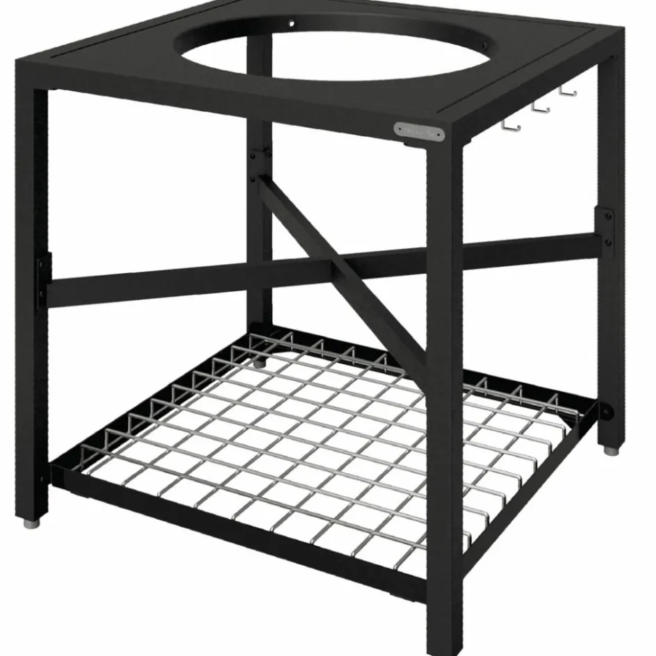 Het Big Green Egg Frame L heeft een afmeting van 76 (B) x 77 (H) centimeter. Het frame wordt geleverd inclusief RVS rooster level en haakjes voor uw gereedschap en 4 stelpoten. De tafelpoten en het frame zijn van gepoedercoat aluminium staal. Het frame van de onderste plank en de dwarsbalken zijn gemaakt van staal. Hierdoor heeft het frame extra draagkracht.