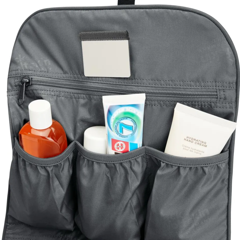 De Jack Wolfskin Konya toilettas heeft een lange levensduur dankzij het gerecyclede Armatech-materiaal. U hoeft zich tijdens het reizen geen zorgen te maken dat uw lichaamsverzorgingsproducten los in uw tas liggen. Deze Jack Wolfskin toilettas heeft verschillende vakjes aan de binnenkant, waarin u uw spullen netjes kunt opbergen. Deze toilettas kunt u overal gemakkelijk ophangen tijdens uw reis. Daarnaast beschikt de toilettas over een spiegeltje dat u naar wens op ooghoogte kunt bevestigen.