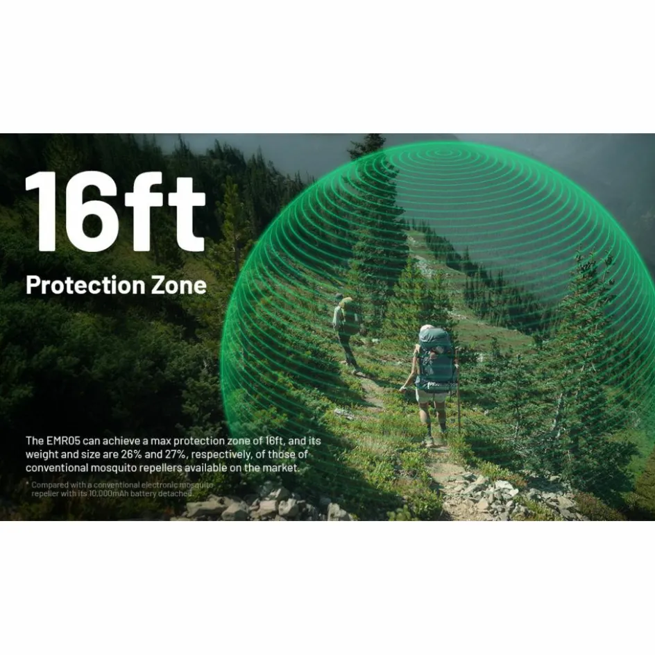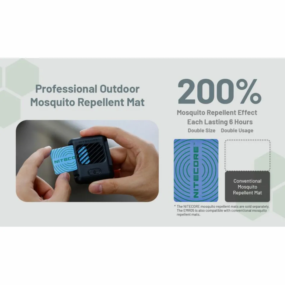Deze NITECORE EMR05 muggenverjager werkt op het vernieuwde FCB verwarmingssysteem. Dit houdt in dat deze muggenverjager van NITECORE werkt met muggenverjagende matjes die opgewarmd worden en op deze manier muggen afstoten. De matjes werken tot 6 uur lang en deze muggenverjager heeft een bereik van maar liefst 4,9 meter. Vanwege het lichte en compacte ontwerp is deze EMR05 makkelijk mee te nemen en u ontvangt bij deze muggenverjager ook een draagkoord en MOLLE bevestigingssysteem. Verder is dit apparaat waterdicht volgens IPX-5 en is het apparaat bestand tegen een valimpact van 1,5 meter. De muggenverjager werkt alleen in combinatie met een powerbank (niet inbegrepen).