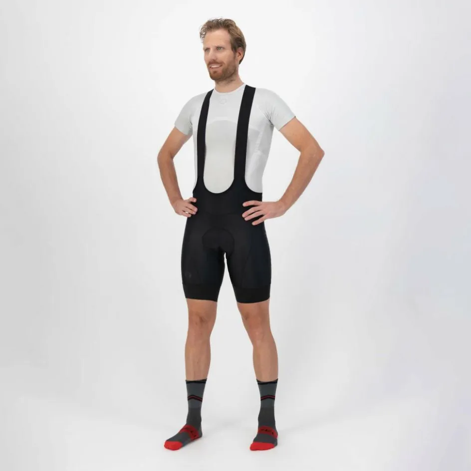 De Rogelli Essential Bib fietsbroek voor heren heeft een aansluitende race pasvorm en is uitgerust met een Comfort Gel zeem voor extra comfort. De voorgevormde Zero-Friction vleugels met Soft-Touch laag zorgen ervoor dat u de gehele rit comfortabel op uw zadel zit. Verder is deze bib fietsbroek gemaakt van ventilerend materiaal met een goed stretch vermogen voor ultieme bewegingsvrijheid.