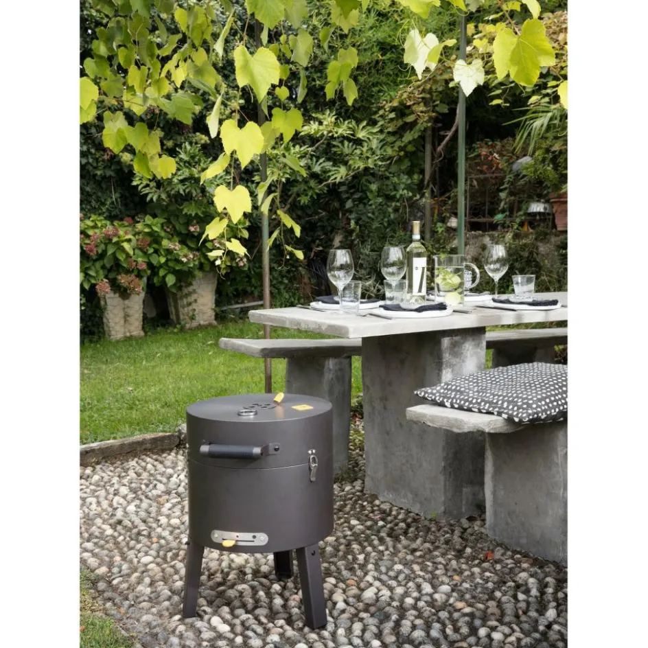 De Boretti Tonello houtskoolbarbecue is licht in gewicht en heeft een industrieel design. Door de draagbeugels en het kleine formaat kunt u de barbecue gemakkelijk mee nemen op vakantie. Dankzij de vorm van de deksel kunt u gerechten met deze barbecue goed roken. De barbecue beschikt over een gietijzeren rooster en de barbecue zelf is gemaakt van staal. Dit product heeft 2 luchtroosters en beschikt bovendien over hittebestendige handvaten.