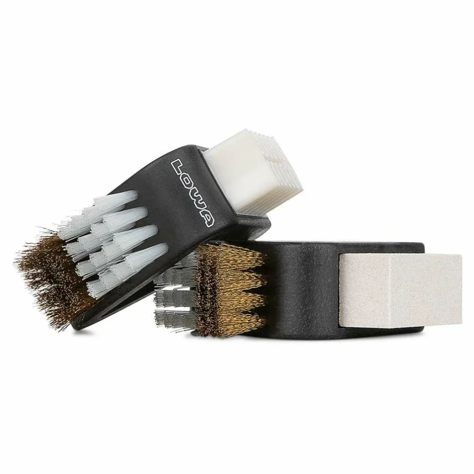 De Lowa Triangle borstel is ideaal voor het onderhouden en schoonmaken van nubuck en suède leren schoenen. Elke zijde van deze Lowa schoenborstel bevat een andere soort borstel: een rubberen borstel om leer schoon te maken, een borstel om nubuck leer te reinigen en een borstel om suède te verzorgen.