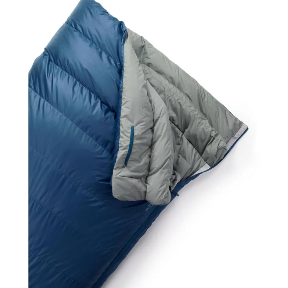De Rab Outpost 500 slaapzak is een veelzijdig dekenmodel slaapzak, ideaal voor kamperen in de lente, zomer en vroege herfst. Dankzij de L-vormige rits kan de slaapzak volledig worden geopend tot een dekbed of worden gekoppeld aan een tweede slaapzak voor extra ruimte. De vulling van 650FP Europees eendendons met Nikwax® hydrofobe behandeling zorgt voor optimale isolatie en vochtbestendigheid. Het materiaal aan de buitenzijde bestaat uit 30D Pertex® Quantum-materiaal wat lichtgewicht en duurzaam is.
