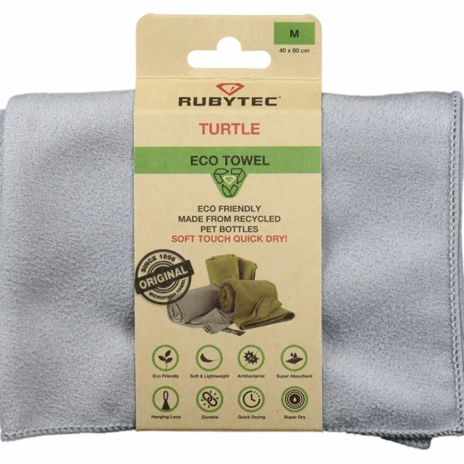 De Rubytec Turtle ECO handdoek is gemaakt van microvezel. Dit materiaal absorbeert veel water en droogt snel op, zodat u altijd een droge handdoek tot uw beschikking heeft. Ook heeft het materiaal antibacteriële eigenschappen die ervoor zorgen dat de groei van bacteriën die geurtjes veroorzaken verminderd wordt. De handdoek is klein en compact op te vouwen en licht in gewicht, waardoor deze ideaal is om mee te nemen tijdens uw avonturen.