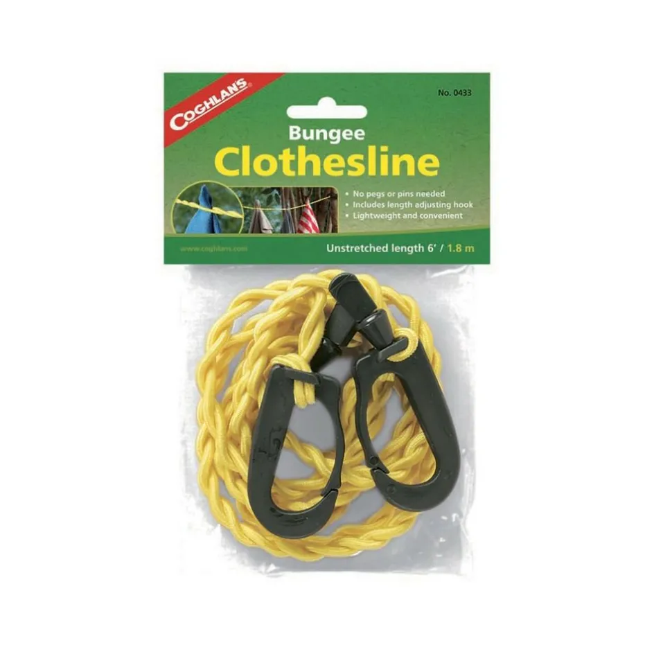 De Coghlan’s Bungee waslijn heeft een lengte van 1,8 meter en is uit te rekken naar 3 meter. Door de opvallende kleur ideaal voor op de camping.