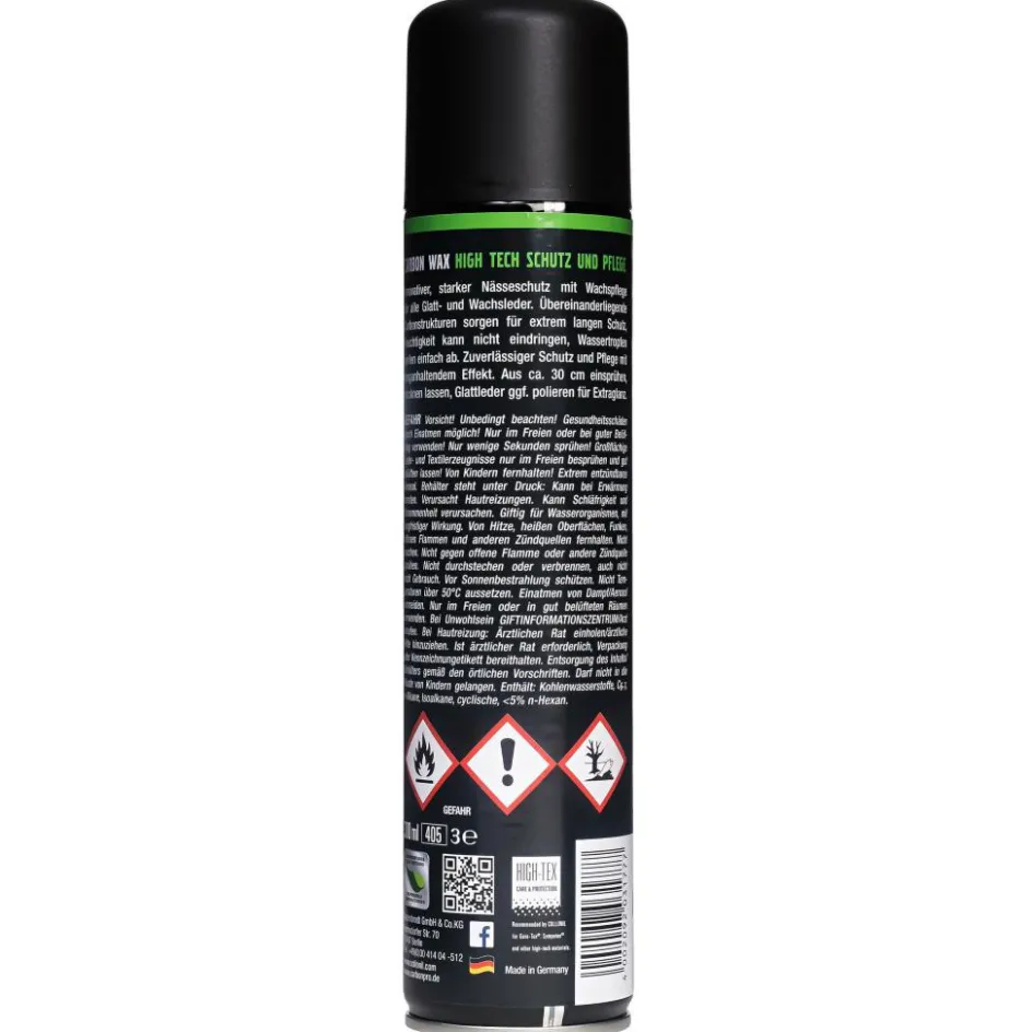 De Collonil Carbon Wax spray 300 ml is geschikt om leren jassen, leren schoenen, wandel- en bergschoenen waterdicht te maken. Met deze Collonil spray kunt u het leer van uw schoenen grondig verzorgen. De spray werkt ook zeer goed met ademende membranen zoals Gore-Tex en Sympatex en beschermt uw schoenen en kleding tegen natheid, vuil en stof. Het is aangeraden deze spray alleen buiten te gebruiken of in ruimtes met goede ventilatie. Laat uw schoenen of jas daarna eerst goed drogen voor gebruik.