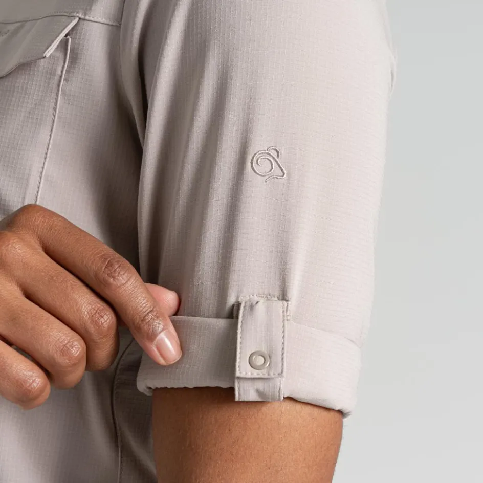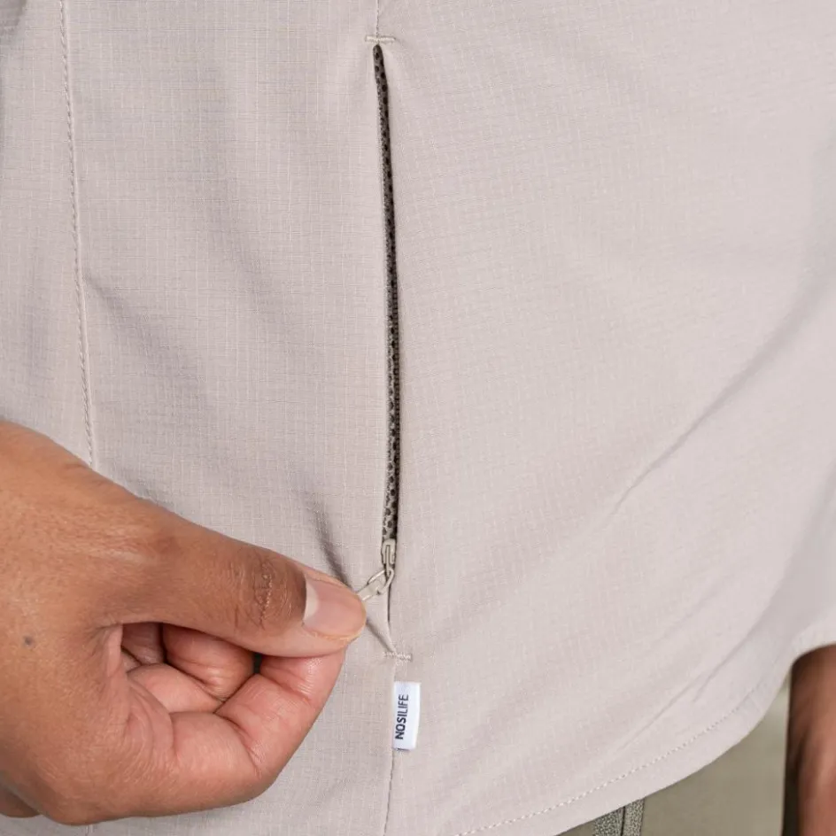 De Craghoppers NosiLife Pro III blouse voor dames is gemaakt van gerecycled, stretch materiaal dat voor veel soepelheid en comfort zorgt. Daarnaast is de blouse gemaakt met verschillende technologieën. Hierdoor is de blouse insectwerend, vochtregulerend en biedt deze UPF50+ zonbescherming. Verder heeft de blouse 3 zakken, waarvan 1 met verborgen rits en beveiligingsvak. De mouwen zijn oprolbaar en blijven op hun plek door de knoopsluiting.