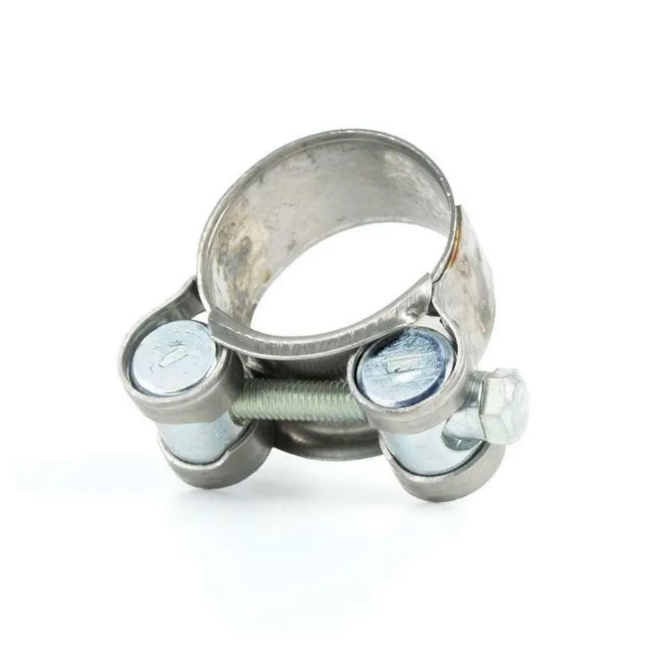 Deze versterkte uitlaatklem is geschikt voor Autoterm luchtverwarmers. De klem is gemaakt van roestvrij staal.