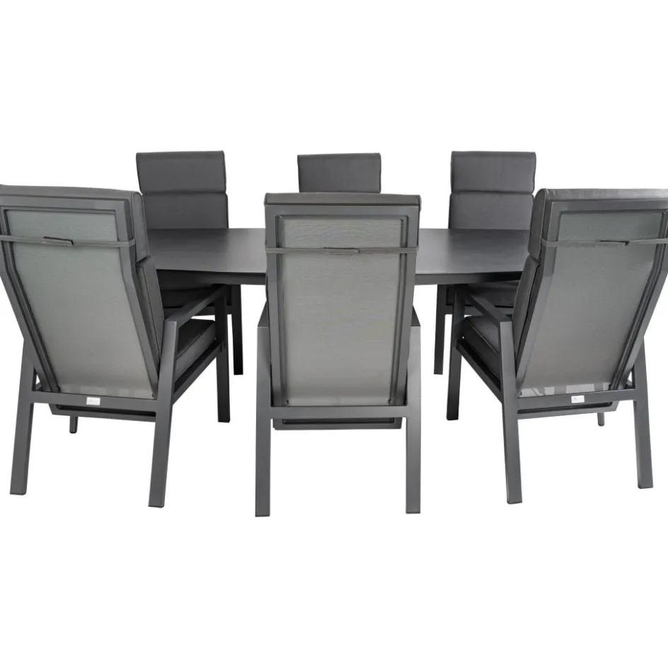 De Bardani Rosario Quinta 260 x 105 cm tuinset biedt een fijne, sfeervolle zitplaats in de zomer. De grootte van de tafel zorgt ervoor dat er uitgebreid getafeld kan worden en omdat de stoelen zitcomfort bieden, kunt u urenlang genieten van de buitenlucht.