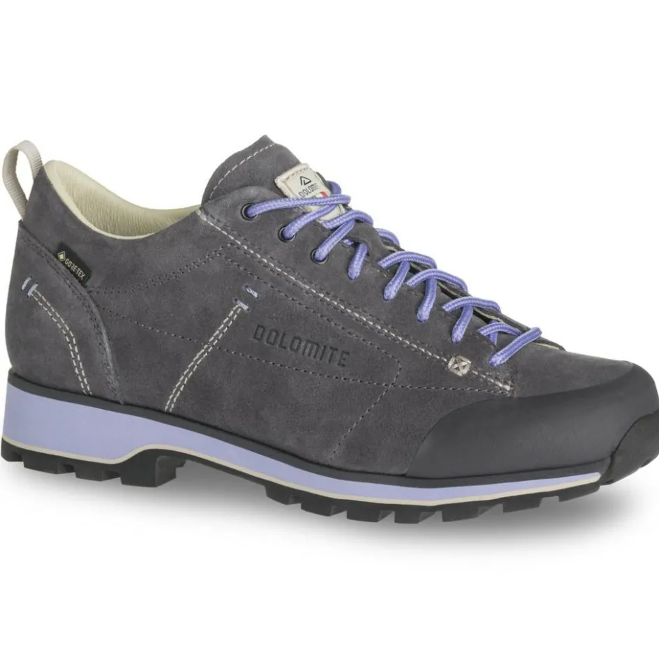 De Dolomite Cinquantaquattro Low GTX schoenen voor dames zijn gemaakt van duurzaam suède en hebben een ademende en waterdichte voering van GORE-TEX. De Vibram Ice Trek 2 buitenzool geeft goede grip en absorbeert schokken tijdens het wandelen. Deze multifunctionele schoenen kunnen gemakkelijk iedere dag gedragen worden.