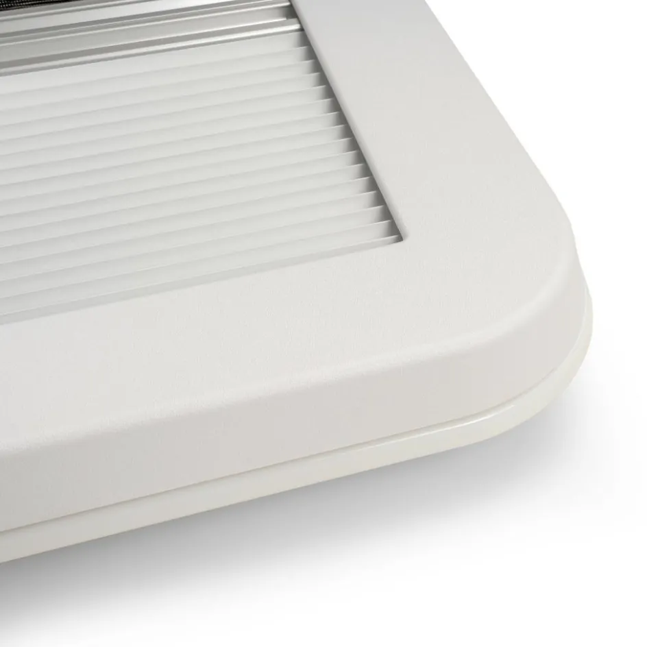 Het DWS Camping RV dakluik is aerodynamisch gevormd en heeft een stevig design. Het DWS Camping dakluik is snel handmatig te openen en vast te zetten met de aluminium stang. De dakluikkap is gemaakt van Uv-bestendig materiaal. Het binnenkader is voorzien van een horrengaas en een verduisteringsgordijn die met een magnetische functie aan elkaar worden gekoppeld. Dit dakluik heeft geen permanente ventilatie.