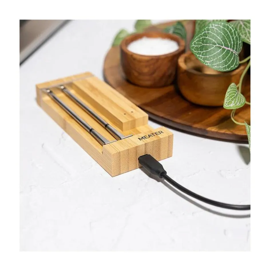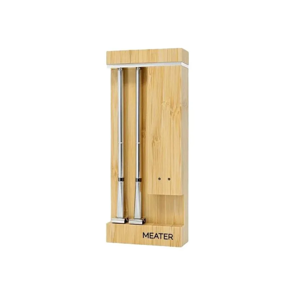 De Meater Pro Duo thermometer heeft 5 interne sensoren en 1 omgevingssensor, waardoor u accuraat de temperatuur van uw vlees kunt meten. Via de app heeft u een duidelijk overzicht. De thermometer heeft een maximale temperatuurlimiet van 550 °C graden. De batterij is snel op te laden via een USB-C ingang.