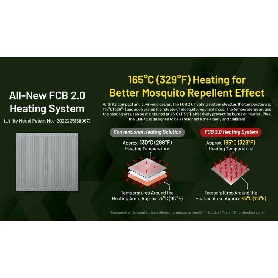 De NITECORE EMR40 muggenverjager is klein, compact en zeer effectief. Deze muggenverjager van NITECORE verwarmt muggenverjagende matten die tot 6 uur lang werken. Binnen 10 minuten worden alle muggen verjaagd. De EMR40 werkt op het innovatieve FCB 2.0 verwarmingssysteem. Daarnaast heeft deze muggenverjager twee standen: een binnenmodus met een bereik van 3,3 meter en een buitenmodus met een bereik van 4,9 meter. Deze compacte muggenverjager is voorzien van een Li-ion batterij en u kunt deze binnen 2,5 uur opladen met de inbegrepen USB-C kabel. De batterij gaat 10 uur lang mee en kan telkens opnieuw opgeladen worden, waardoor de muggenverjager zeer milieuvriendelijk is. Verder is dit apparaat waterdicht volgens IPX-5, heeft de EMR40 een bevestigingsclip en is het apparaat bestand tegen een valimpact van 1 meter.