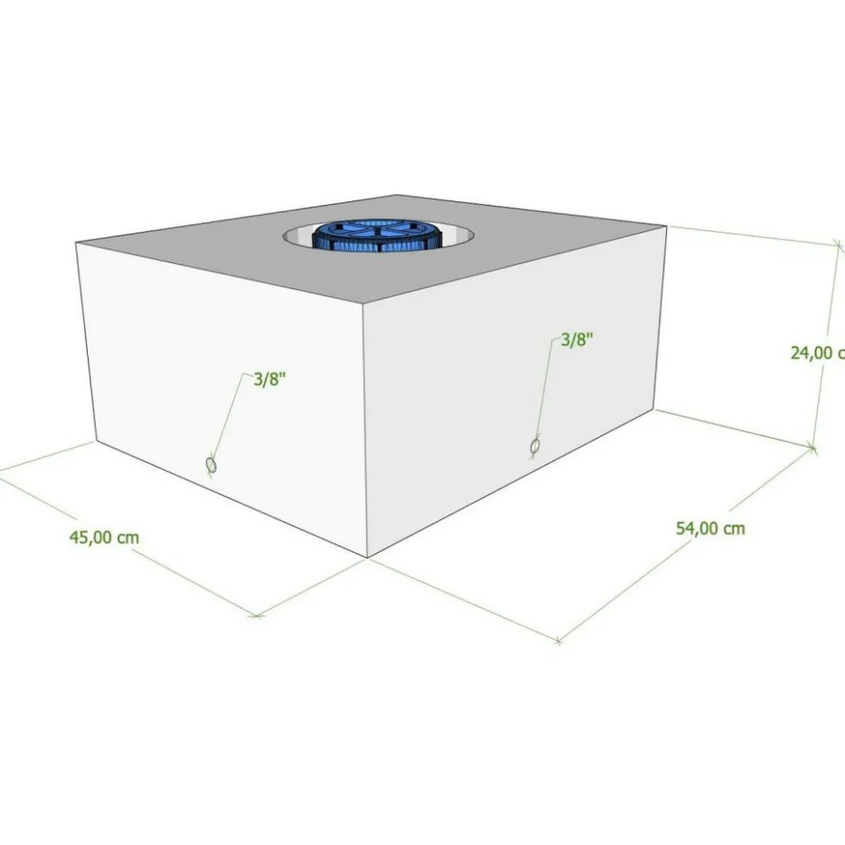 De Vecam watertank is geschikt voor vuil- en schoonwater toepassingen in een caravan, camper of boot. De tank heeft een afmeting van 45 x 54 x 24 centimeter. De tank beschikt over voorgemonteerde montagegaten. Via de grote opening aan de buitenkant is het onderhoud hiervan een stuk eenvoudiger gemaakt. De kunststof tank is licht van gewicht en kan tegen een stootje. Bij het monteren van de tank is het belangrijk dat de grote dop aan de bovenkant zit.