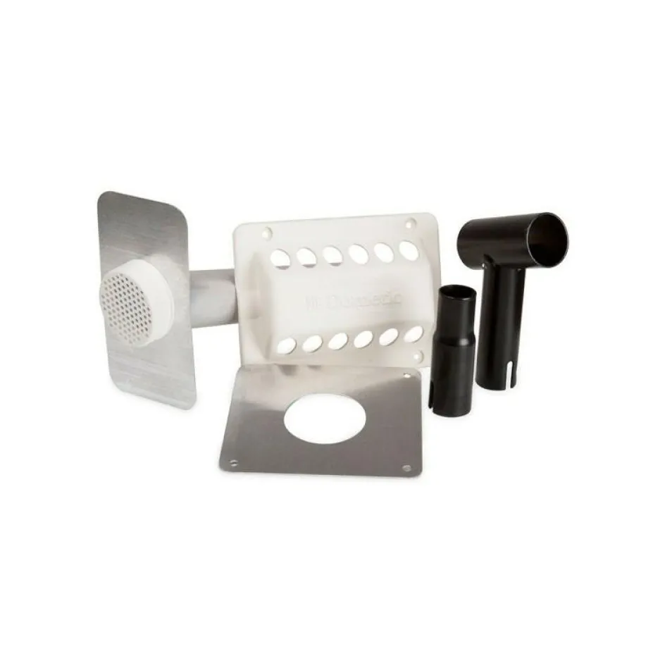 De Dometic gasafvoerset is een complete set voor absorptiekoelkasten. De set wordt standaard geleverd met een afdekrooster voor de buitenwand, maar de afvoer kan ook worden ingebouwd in het LS 100 koelkastrooster van Dometic. De afvoer wordt dan geplaatst achter het schoorsteen inzetstuk. De rookgasafvoer past direct op de gasafvoer van een Dometic absorptiekoelkast.