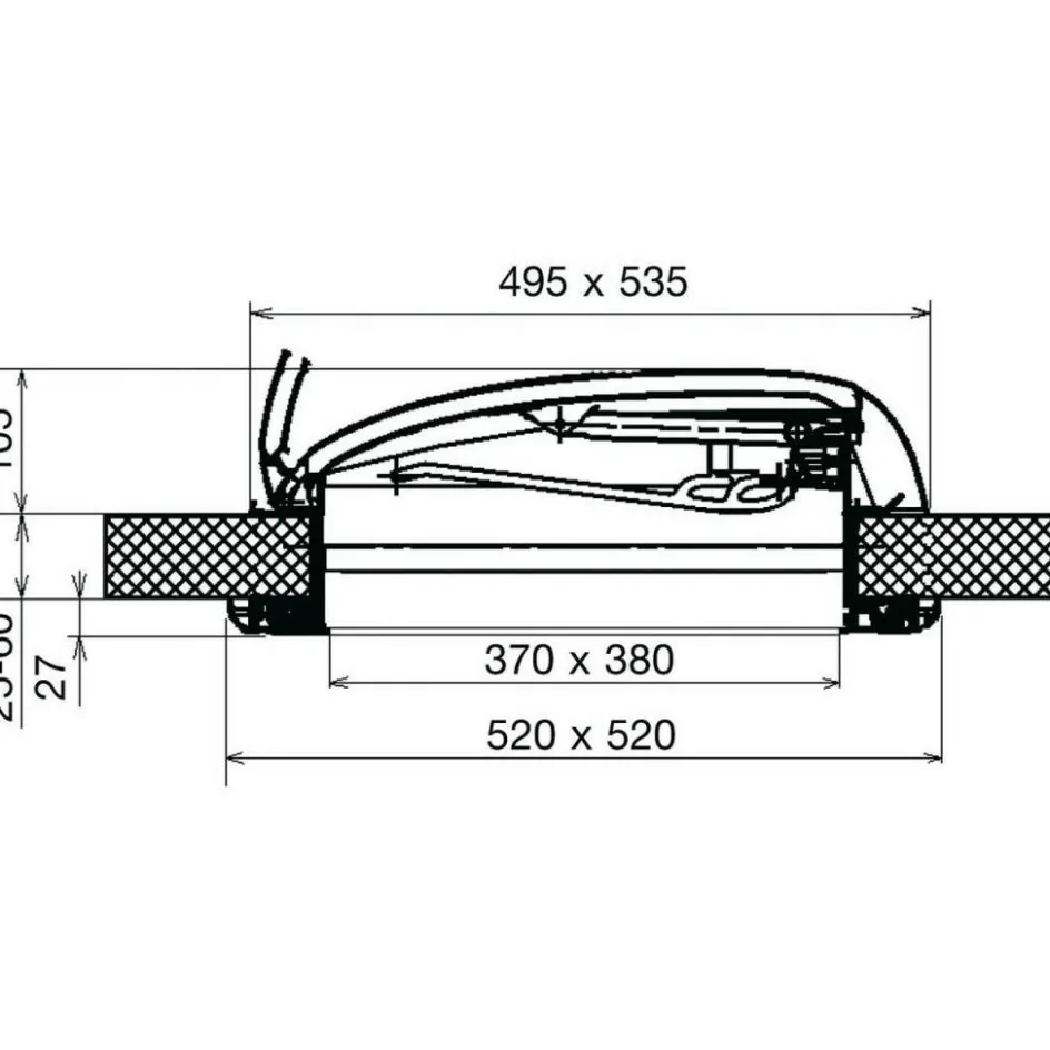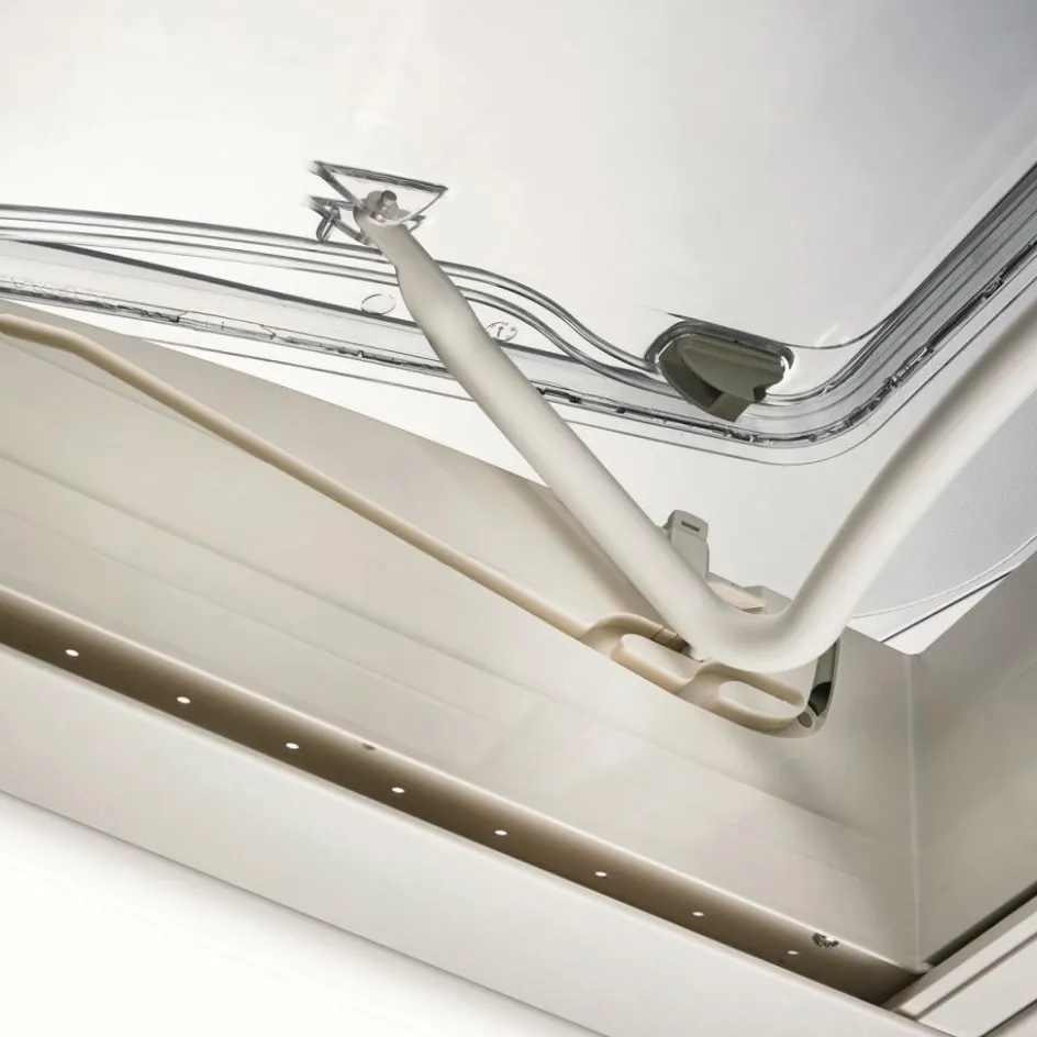 Het Mini Heki Style dakluik van Dometic biedt meer licht en lucht in uw caravan of camper. Dit Dometic dakluik is geschikt voor een gatmaat van 40 x 40 centimeter, in daken van 43 tot 60 millimeter dik. Het frame van dit dakluik is crèmewit, RAL 9001. Wanneer het luik is gesloten, steekt deze 12 centimeter boven het dak uit.