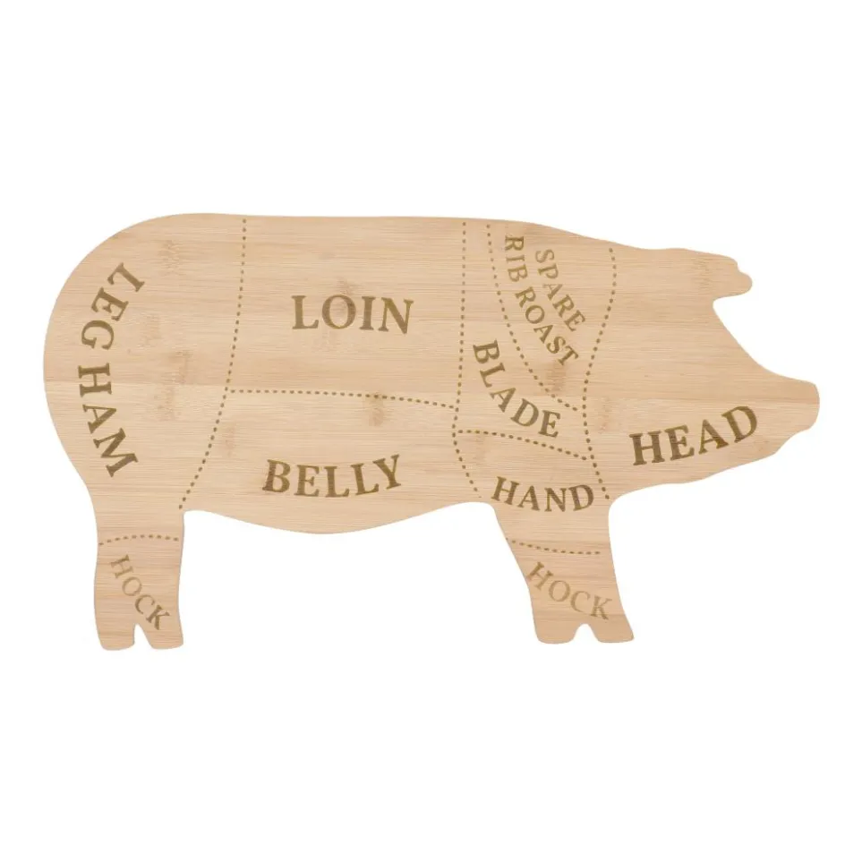 De Esschert Design Varken snijplank heeft de vorm van een varken met daarop de verschillende lichaamsdelen van het dier uitgelicht. Deze snijplank van Esschert Design is een unieke manier om uw eten op te presenteren of te bereiden. De snijplank is gemaakt van bamboe.