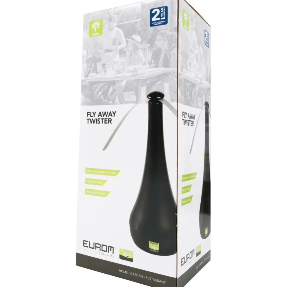 De Eurom Fly Away Twister vliegenverjager zorgt ervoor dat vliegen uit de buurt blijven van bijvoorbeeld uw eten. Daarnaast is deze vliegenverjager handig om mee te nemen, omdat hij geen draad bevat en compact is. Deze vliegenverjager werkt op batterijen en de bladen stoppen met draaien bij aanraking. Er gaan 2 AA-batterijen van 1,5 volt in.