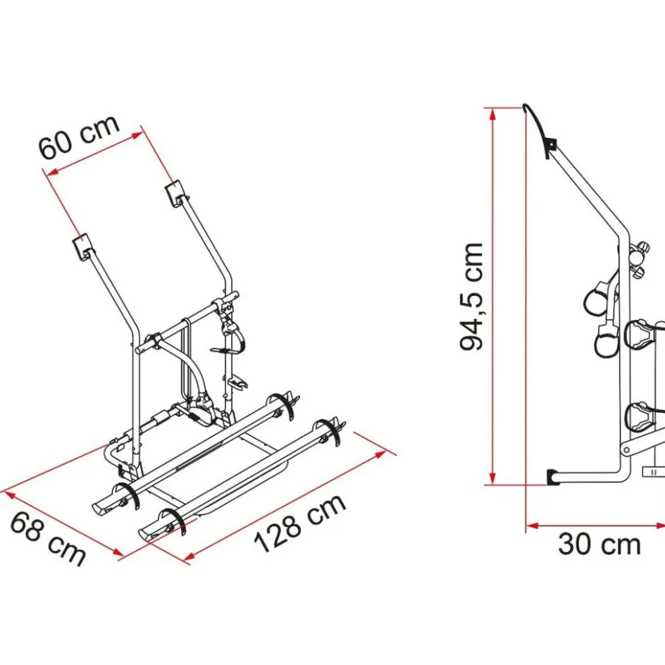 Carry Bike fietsendrager voor de Volkswagen T3 van Fiamma kan twee fietsen dragen. De fietsendrager is makkelijk te monteren op de achterklep van het voertuig zonder dat u hoeft te boren.