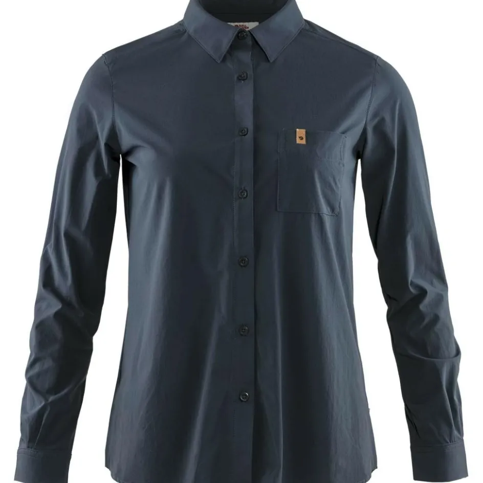 De Fjällräven Övik Lite blouse dames navy is een comfortabele blouse die warme zomerdagen nog aangenamer zal maken. De Fjällräven blouse is gemaakt van een sneldrogende, lichtgewicht stretchstof die heerlijk koel aanvoelt op uw huid. De blouse heeft een klassieke uitstraling, een borstzak en knopen van gerecycled polyester.