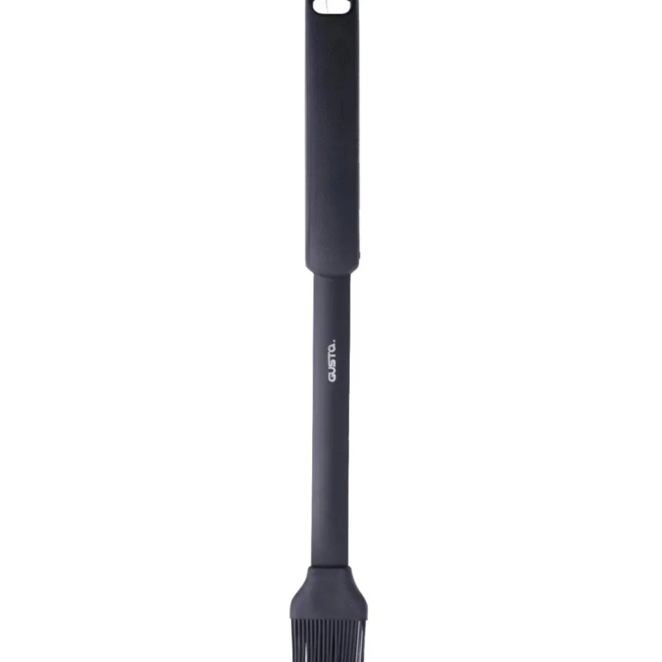 De Gusta Siliconen bakkwast is gemaakt van rvs en hittebestendig kunststof, waardoor deze ideaal is om uw warme barbecue gerechten in te kunnen smeren met de heerlijkste marinades of sauzen. De bakkwast is vaatwasserbestendig.