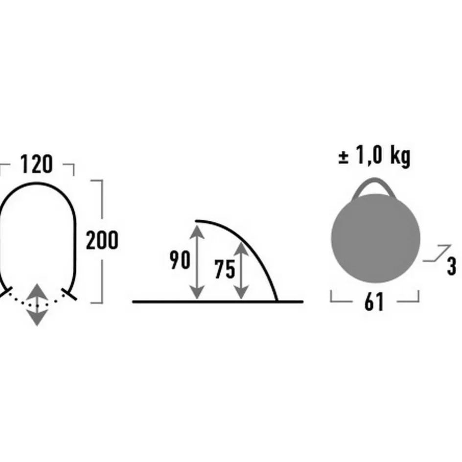 - Ruimte voor twee personen: met een vloer van 200 x 120 cm, een voorkanthoogte van 90 cm en 75 cm achterin zit u comfortabel uit de wind.