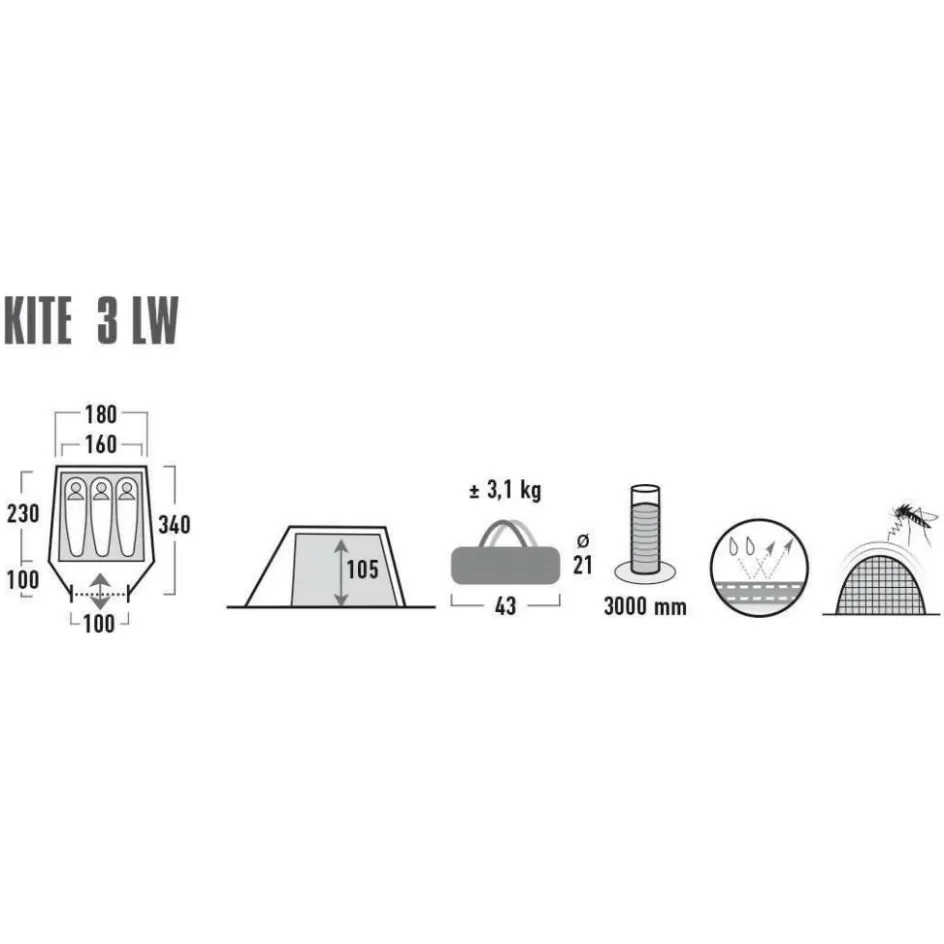 De High Peak Kite 3 LW is een lichtgewicht tunneltent voor trekkers die snel, droog en overzichtelijk willen kamperen. De binnentent is al aan de buitentent bevestigd, zodat u razendsnel kunt opzetten. In het voorportaal houdt een vast grondzeil uw bagage schoon en droog, terwijl de binnendeur met horrengaas muggen buiten laat en frisse lucht binnenbrengt. Ideaal voor korte hikes, bikepacking of weekendtrips met twee personen en extra uitrusting of ga compact kamperen met drie personen.