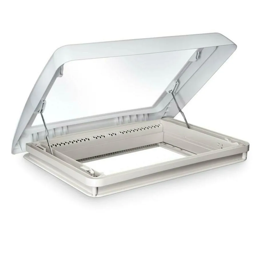 Dit Midi Heki dakluik is met de zwengel traploos te openen. Het luik biedt permanente ventilatie, ook als het luik gesloten is. Doordat dit dakluik permanent geventileerd is kan er tijdens het rijden een fluittoon ontstaan. Dit is te verhelpen door het Dometic afdichtingsrubber Midi Heki bij te bestellen. Dit product is ook op onze website te bestellen.