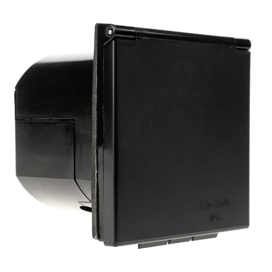 De Crusader CEE wandinvoerdoos in de kleur zwart maakt het mogelijk de CEE stekker aan te sluiten op caravan, camper of boot. Zo bent u tijdens uw reis voorzien van een veilige 230 volt aansluiting. De deksel maakt de verbinding namelijk spatwaterdicht, waardoor deze aan de Europese veiligheidsnorm voldoet.