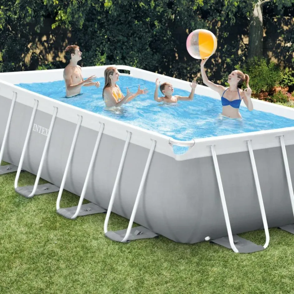 Het rechthoekige Prism rectangular frame opzetzwembad van Intex heeft een zeer grote afmeting. Hierdoor heeft u voldoende ruimte om met het hele gezin te zwemmen . Het stevige zwembad wordt geleverd inclusief een C900 filterpomp en veiligheidstrap.