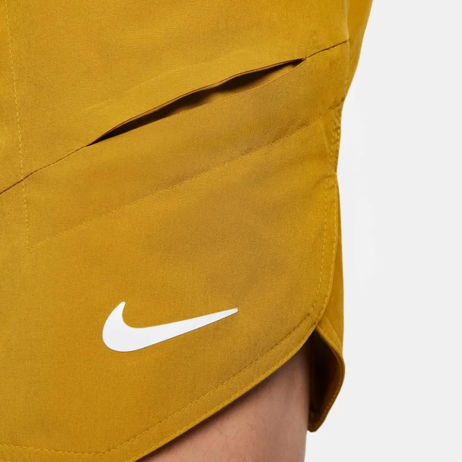 De Nike Court Dri-FIT Advantage tennisshort voor heren heeft een losse pasvorm en de elastische tailleband maakt de short perfect passend. De opvallende short is voorzien van zakken voor tennisballen en deze blijven goed zitten doordat de zakken schuine plooien hebben. De broek is sneldrogend en ademend en is voor minstens 75% gemaakt van gerecyclede polyestervezels.