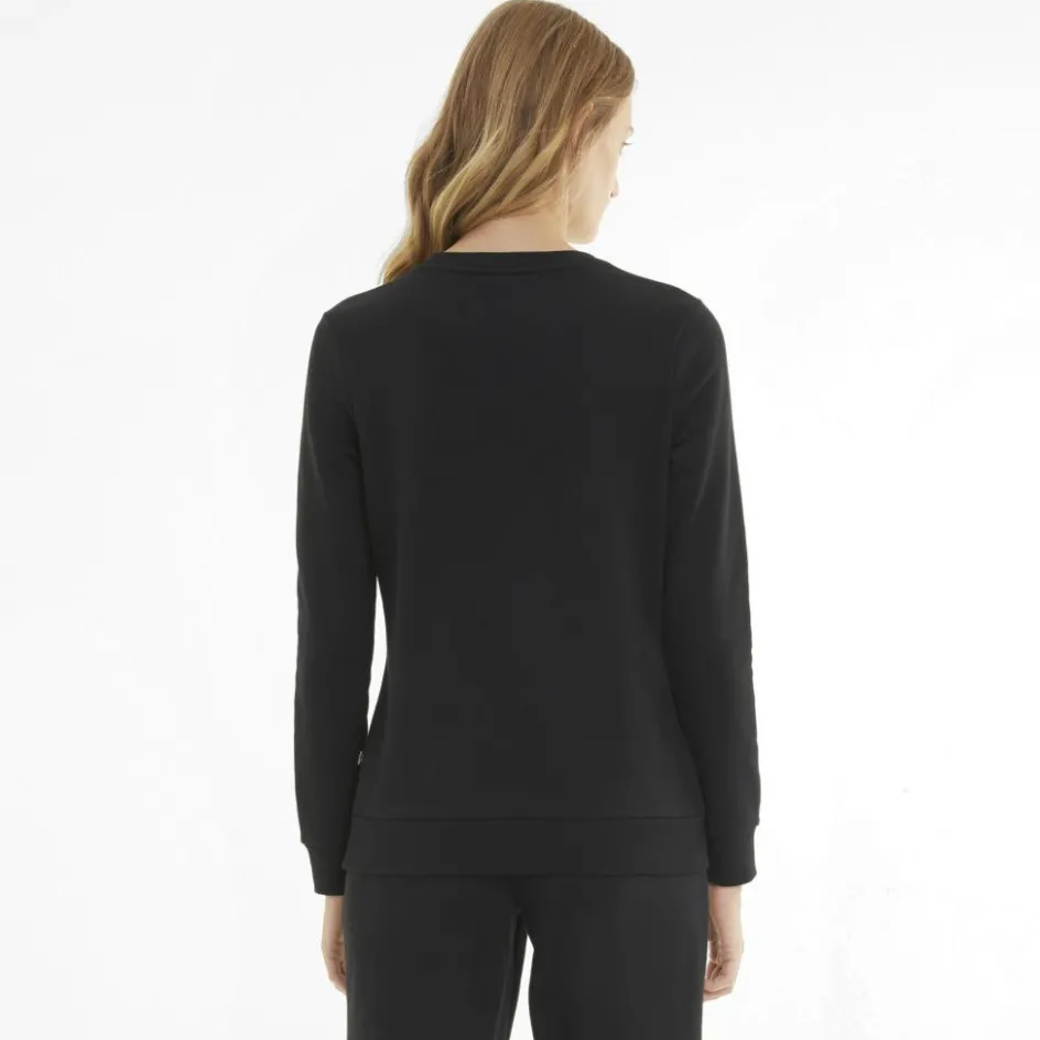 De Puma Essentials Logo Crew sweater voor dames heeft een aansluitende pasvorm. De ronde halslijn en de geribde zoom zorgen voor meer draagcomfort. De trui is gemaakt van katoen en van gerecycled polyester.
