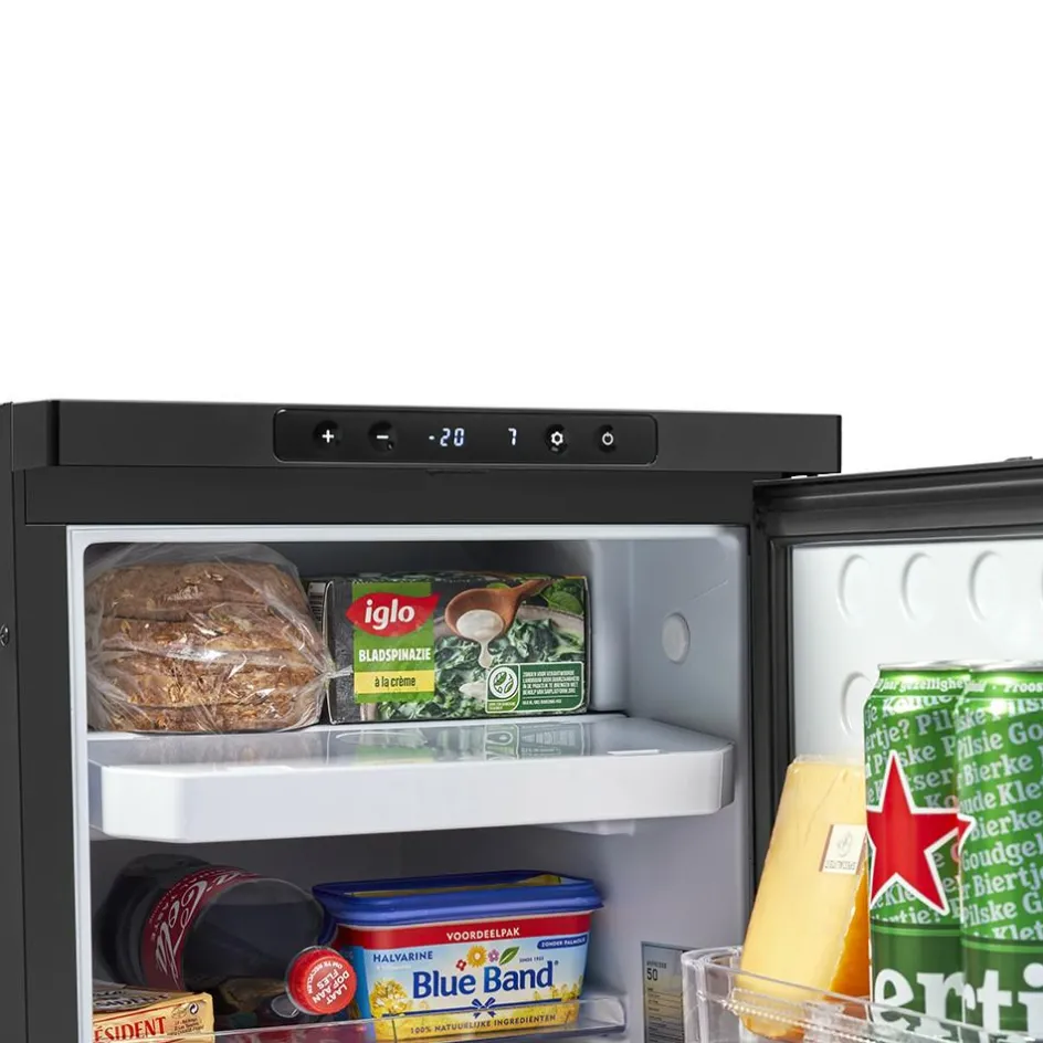 Deze koelkast is uitgerust met een krachtige compressor met variabele snelheid. De HyFridge 50 past zich automatisch aan om de meest efficiënte koelprestaties te garanderen. Dankzij de intelligente elektronica wordt de juiste snelheid automatisch bepaald voor een consistente temperatuurregeling. Voor extra energie-efficiëntie is er een inschakelbare eco-nachtfunctie beschikbaar, die de compressorsnelheid met 35% verlaagt en het display dimt voor een rustige nachtrust zonder storende geluiden.