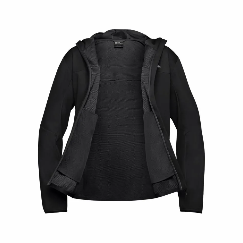 De Jack Wolfskin Feldberg Hoody softshell jas voor heren is onder andere geschikt voor wandelingen en outdoor activiteiten. Het TEXASHIELD PRO SINGLE PRO JERSEY is een technisch materiaal wat winddicht en waterafstotend is. Deze Jack Wolfskin softshell heeft twee heupzakken met ritsen.
