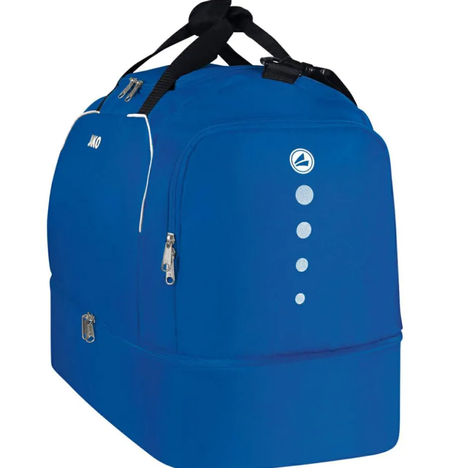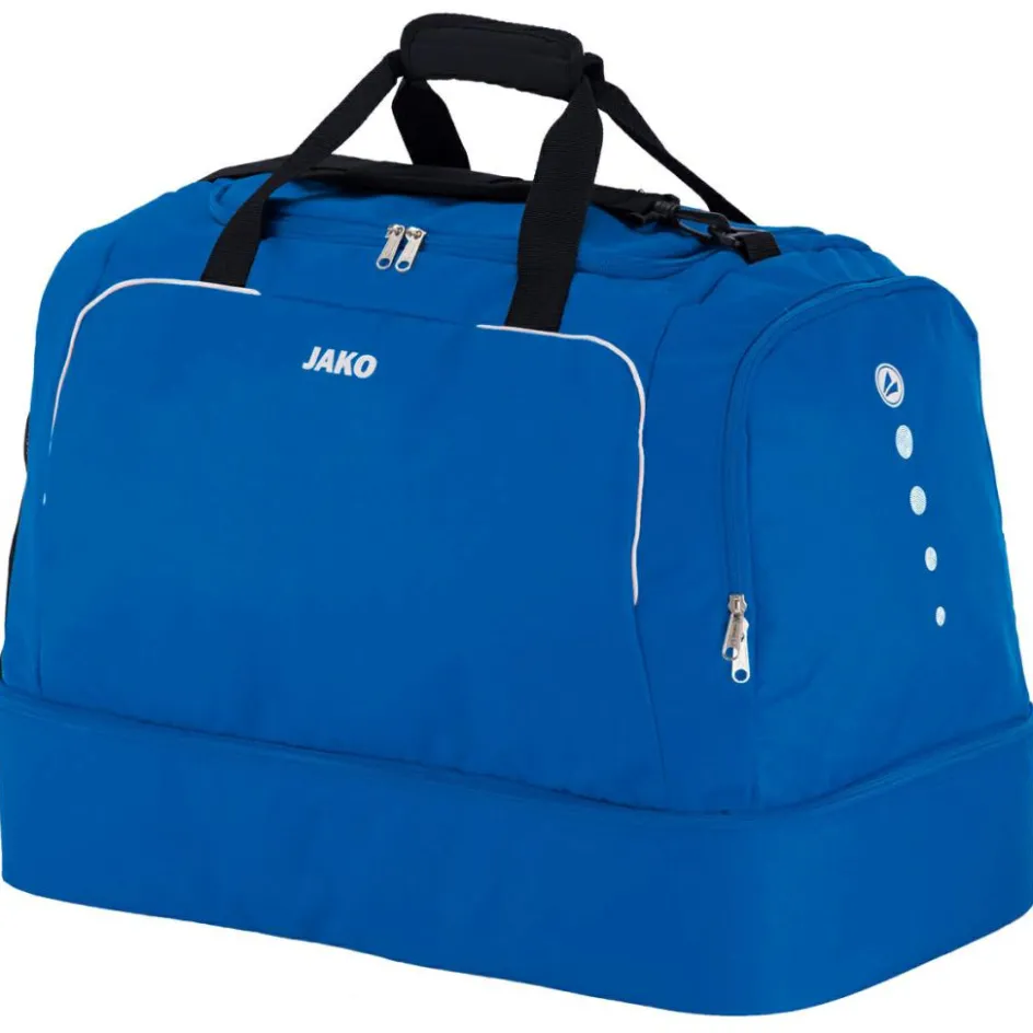 De veelzijdige Classico sporttas van Jako, inclusief bodemvak, is de perfecte keuze voor voetballers. Het ruime hoofdvak met tweewegssluiting zorgt ervoor dat vuile voetbalschoenen gescheiden blijven van de rest van uw spullen. Deze tas is ook uitgerust met een praktisch, geïntegreerd mesh-vak. Pas de lengte van de schouderriem aan voor een individuele draagervaring.