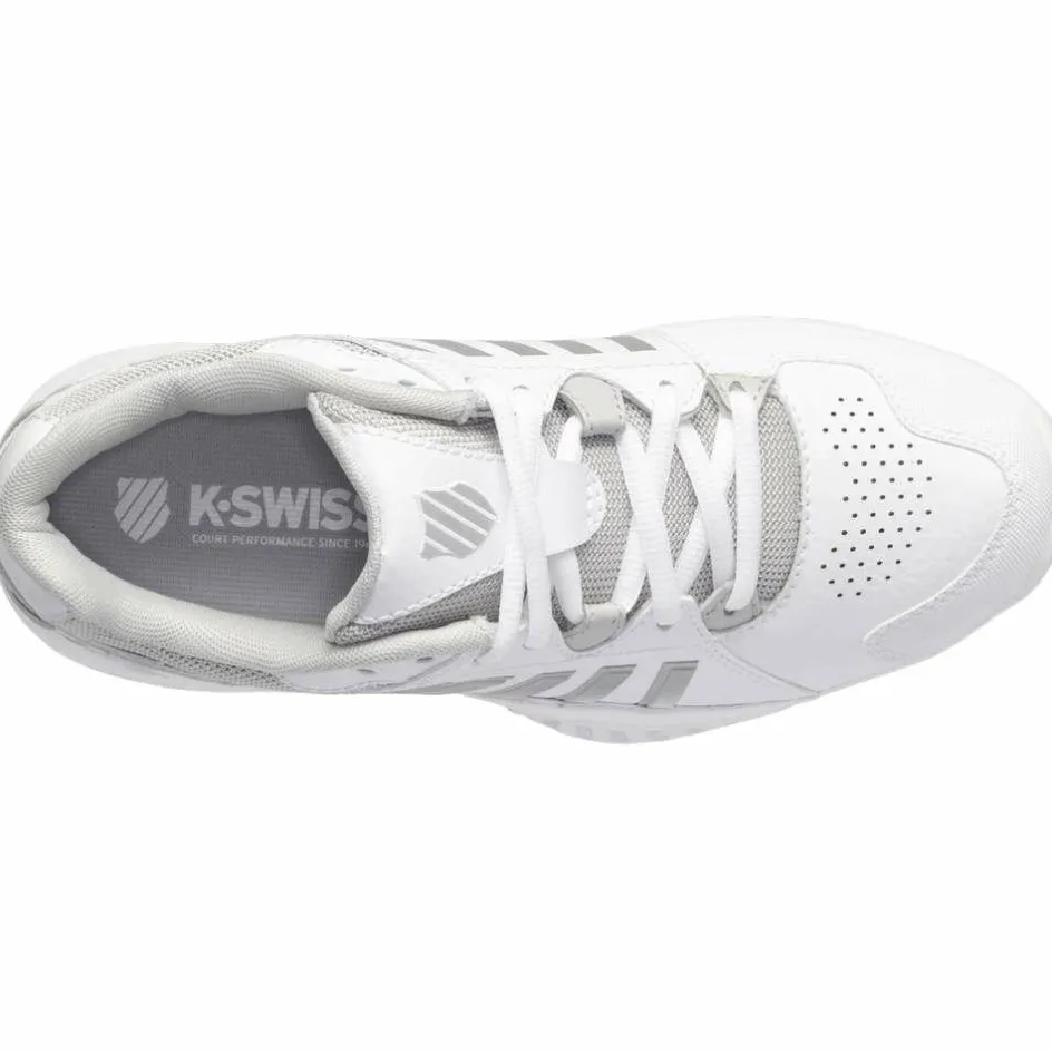 De K-Swiss Receiver V Omni tennisschoenen voor dames hebben een minimalistische look. De dempende zool in combinatie met de ademende upper zorgt voor een comfortabel draaggevoel. Deze schoenen zijn speciaal ontworpen om uw spel naar een hoger niveau te brengen.