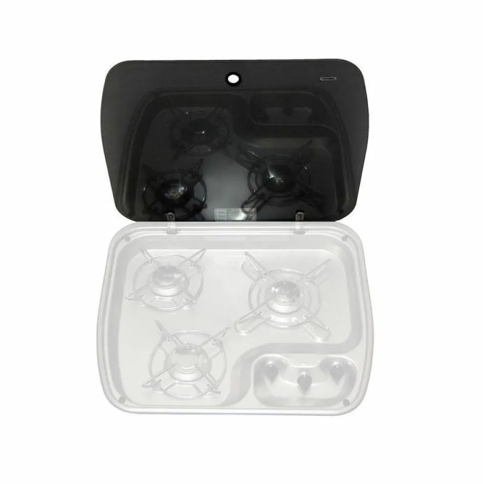 Deze losse Dometic afdekplaat behoort bij de CE99-DF-I-G 3-pits kookplaat. De plaat is vervaardigd van temperatuurbestendig veiligheidsglas.