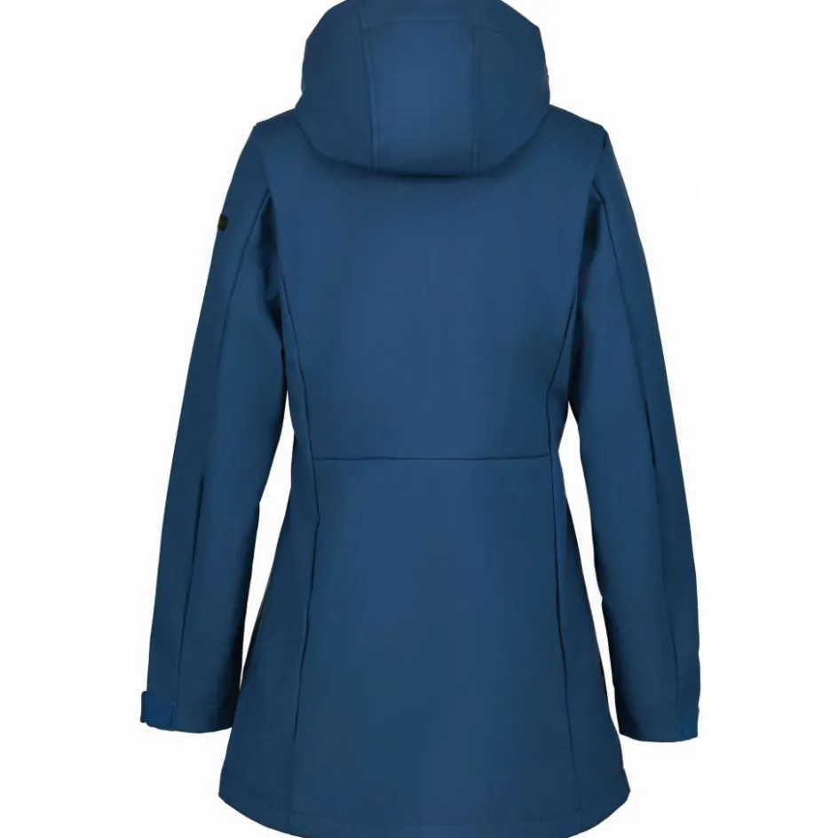 De Icepeak Alamosa parka softshell jas voor dames in blue combineert stijl en comfort met goede bescherming tegen het weer. Dankzij het waterafstotende softshell-materiaal en de langere pasvorm blijft u warm en droog, wat het perfect maakt voor dagelijks gebruik en buitenactiviteiten.