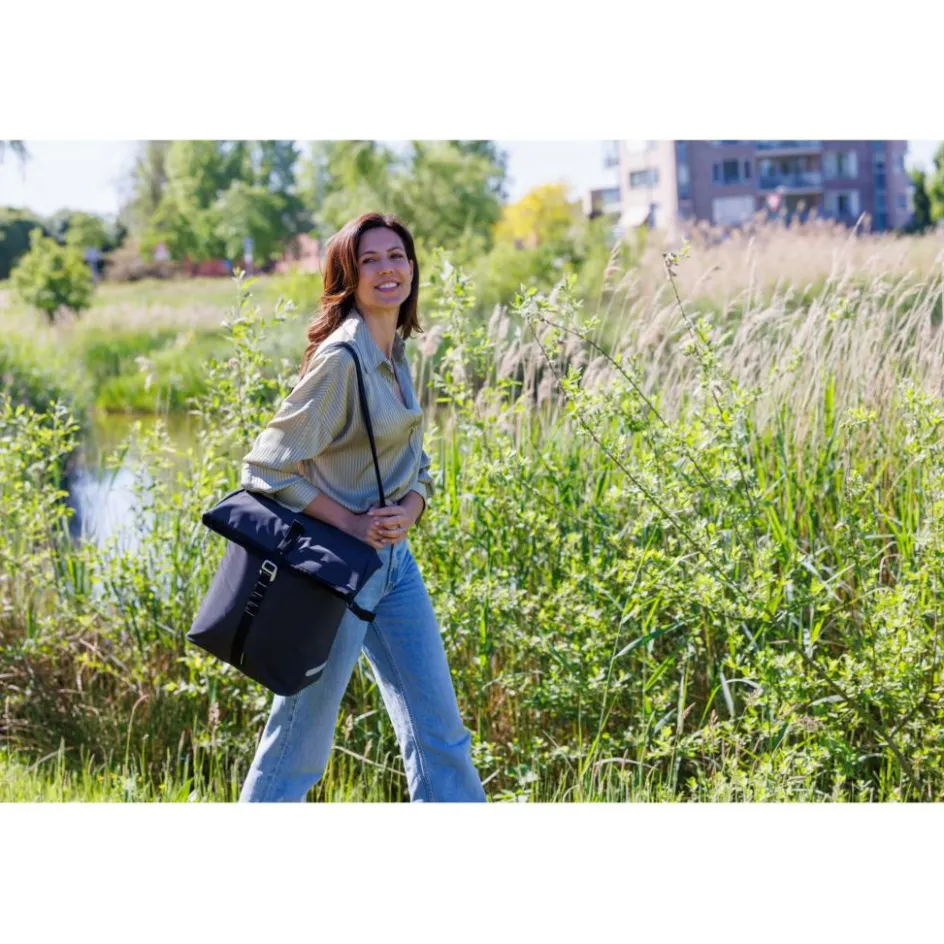 De New Looxs Cantos Single is een stijlvolle zwarte fietstas met 16,5 liter inhoud. Hij is eenvoudig te bevestigen aan de bagagedrager en biedt genoeg ruimte voor uw boodschappen en werk- of schoolspullen. Ideaal voor dagelijks gebruik ook mede door de mogelijkheid om het als schoudertas te dragen.