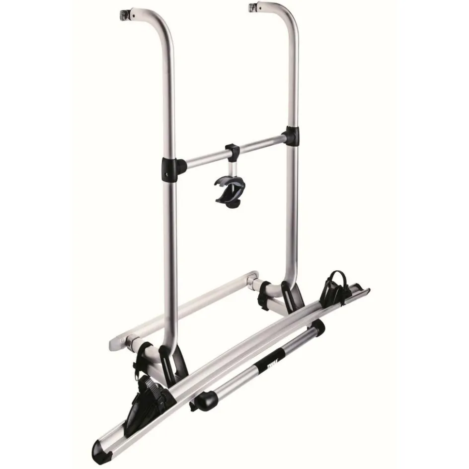 De Thule Elite G2 One Bike is een multifunctionele fietsendrager waarmee u uw fiets veilig en gemakkelijk bij u kunt dragen. Thule fietsbeugels zijn zeer veilig omdat ze zijn gemaakt van de beste materialen en zijn getest volgens de hoogste normen. Ze zijn uitgerust met de nieuwste innovatieve technologie en modern design, wat zeer geschikt is voor elk camper- en caravanmodel. De Thule Elite G2 One Bike fietsendrager voor caravans of campers wordt aan de achterzijde van uw voertuig gemonteerd. Deze compacte fietsendrager biedt plaats aan 1 e-bike. De rail schuift heen en weer en glijdt soepel, zodat je moeiteloos de beste positie voor je fiets kunt vinden. Bovendien kunt u er zeker van zijn dat uw fiets stevig vast staat: u kunt het platform handmatig vergrendelen om uw fiets vast te zetten tijdens het transport. De wielen blijven stabiel in een zelfklemmende, flexibele wielbeugel, waardoor fietsen met verschillende wielmaten vervoerd kunnen worden.
